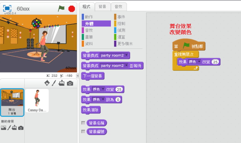 • 舞台效果,改變舞台背景顏色
