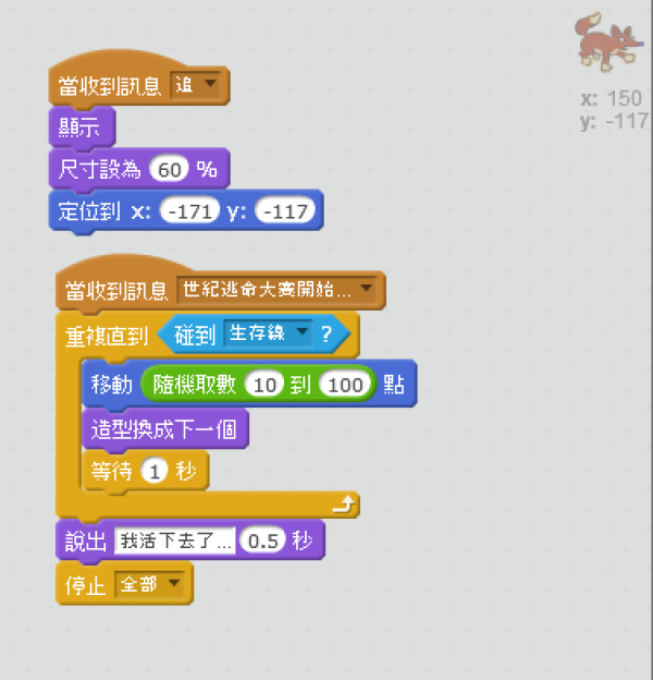 5.狐狸的程式碼,隨機步數的設定,停止全部,增加造型