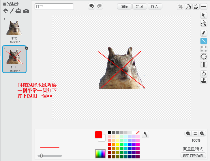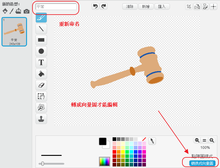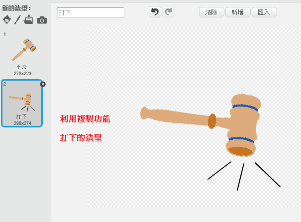 3、將槌子重新命名為「平常」並向量化圖形,可修成舉起來的狀態