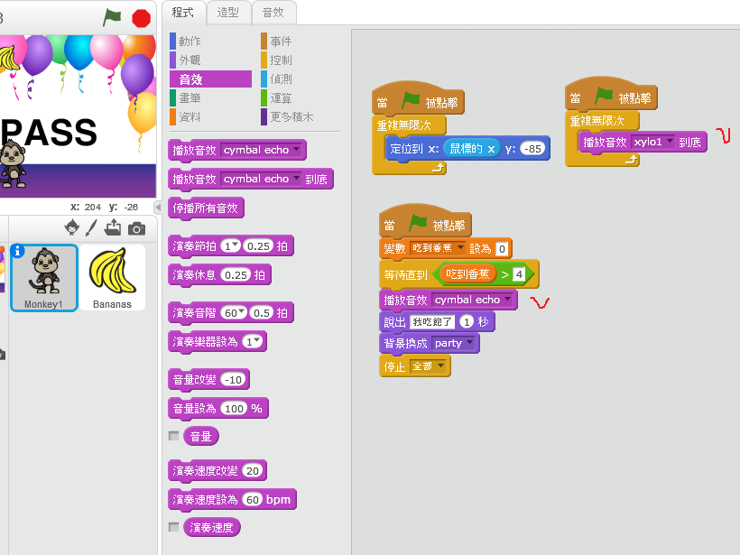 • 課程/六上程式語言教學/03小猴子吃香蕉.txt