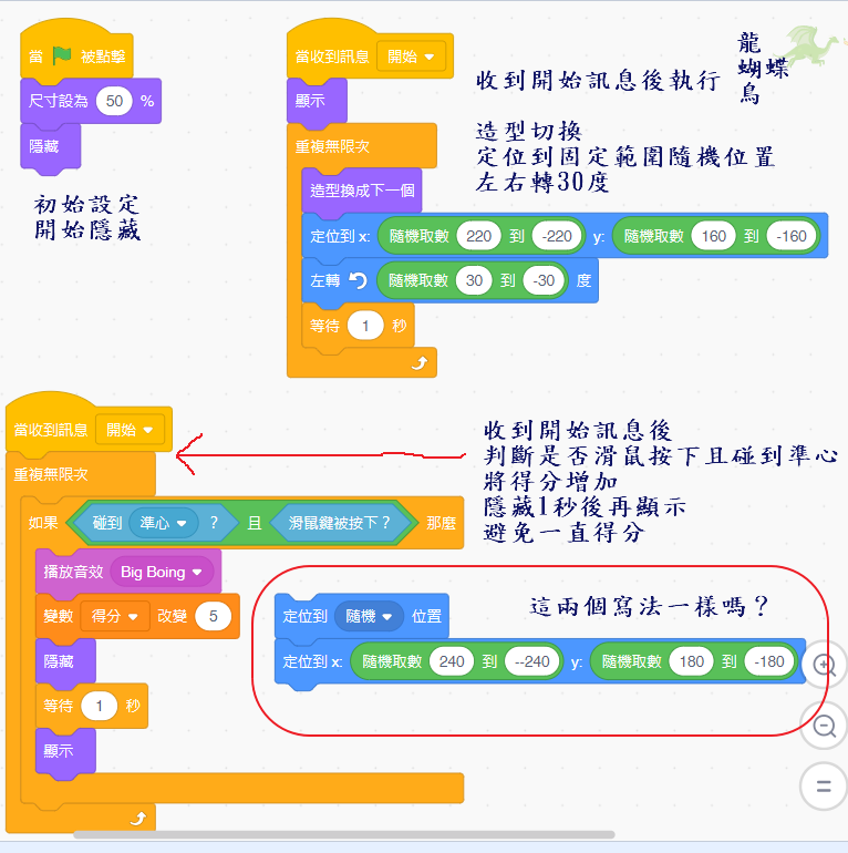 4、鳥、蝴蝶的程式碼,複製飛龍的再修改速度即可