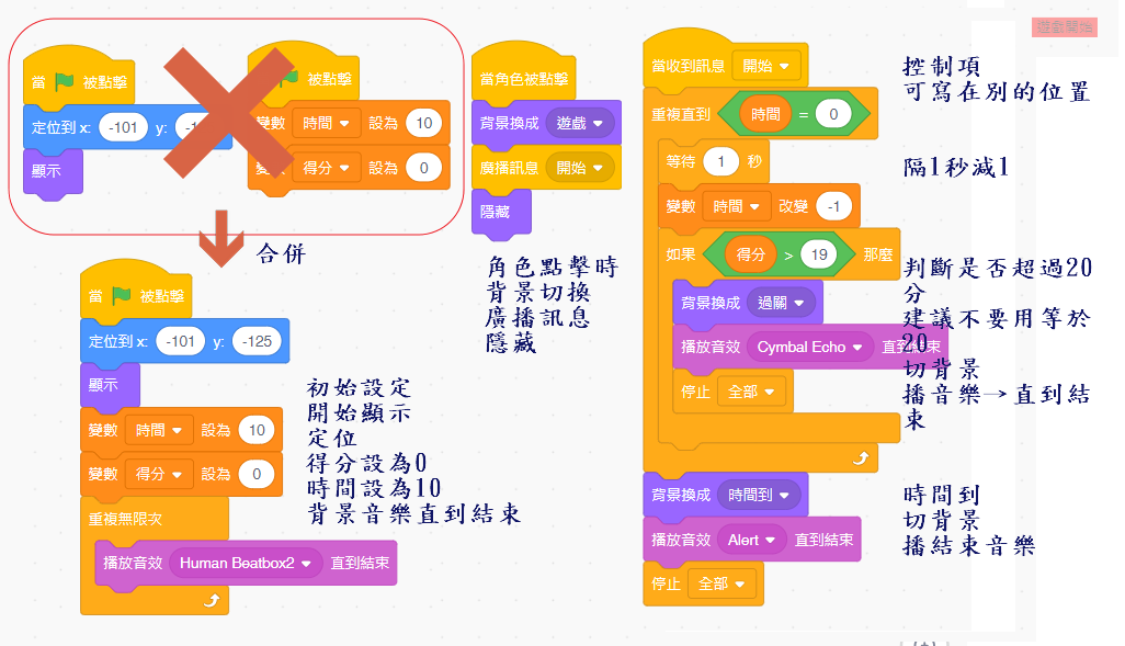 程式碼順序:角色的初始設定→遊戲部份→得分及控制項部份