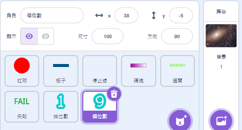 主角六個:紅球、板子、停止線、磗塊、得分、失敗、十位數、個位數