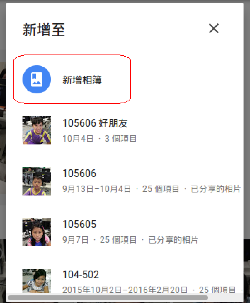 顯示原始碼舊版反向連結回到頁頂 Share via Share via... Twitter LinkedIn Facebook Pinterest Telegram WhatsApp Yammer Reddit Teams最近更新Send via e-MailPrintPermalink × 目錄表 05插入片相簿-我與好友 001表格呈現好友 002Google相片功能 003相簿播放 這是本文件的舊版! 05插入片相簿-我與好友 001表格呈現好友 先下載三位好朋 105605 105606 表格→插入表格→2×3 002Google相片功能 將桌面上三張好朋友的照片上傳至自己的GOOGLE相片內 找九宮格→更多→找到「相片」 相片有四個功能,動畫,照片拚貼自己試試 選擇上傳照片 將上傳照片選擇好 找到右上角「+」新增至 003相簿播放 插入→Google+→相簿 課程/六上網頁製作教學/05插入片相簿-我與好友.1476231084.txt.gz 上一次變更: 2016/10/12 08:11由 admin