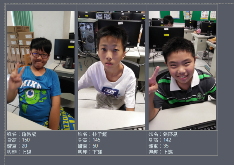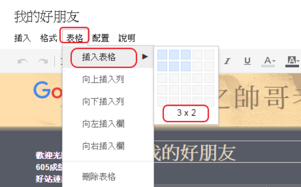 顯示原始碼舊版反向連結回到頁頂 Share via Share via... Twitter LinkedIn Facebook Pinterest Telegram WhatsApp Yammer Reddit Teams最近更新Send via e-MailPrintPermalink × 目錄表 05插入片相簿-我與好友 001表格呈現好友 002Google相片功能 003相簿播放 這是本文件的舊版! 05插入片相簿-我與好友 001表格呈現好友 先下載三位好朋 105605 105606 表格→插入表格→2×3 002Google相片功能 將桌面上三張好朋友的照片上傳至自己的GOOGLE相片內 找九宮格→更多→找到「相片」 相片有四個功能,動畫,照片拚貼自己試試 選擇上傳照片 將上傳照片選擇好 找到右上角「+」新增至 新相簿 打上相簿名稱即完成 相簿、相片的差異,只是多增加一種分類,照片可增至多個相簿內 003相簿播放 插入→Google+→相簿 課程/六上網頁製作教學/05插入片相簿-我與好友.1476245211.txt.gz 上一次變更: 2016/10/12 12:06由 admin