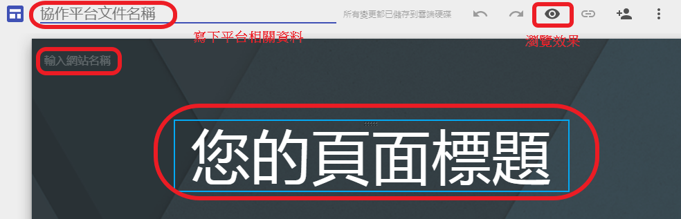 設定協作平台名稱、網頁名稱、標題,之後再可再修改