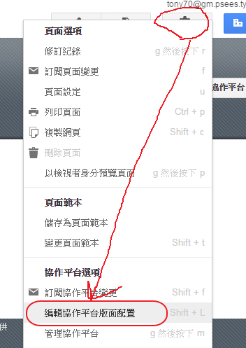 設定→協作平台版面配置