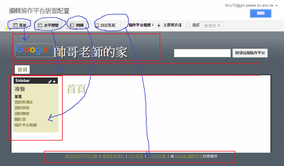 側欄編修:點選「導覽」