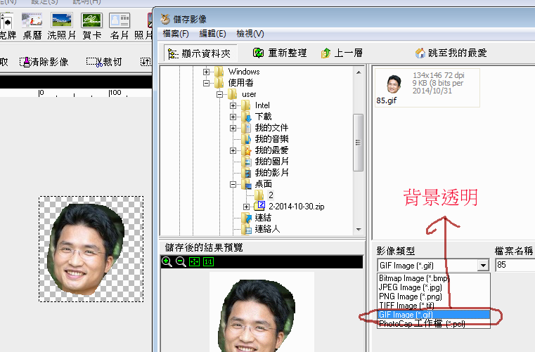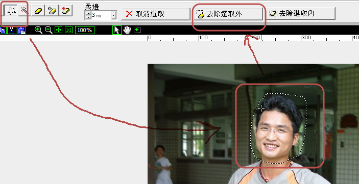 2.將自己的大頭圈選起來,一口氣,不中斷,「去除選取外」