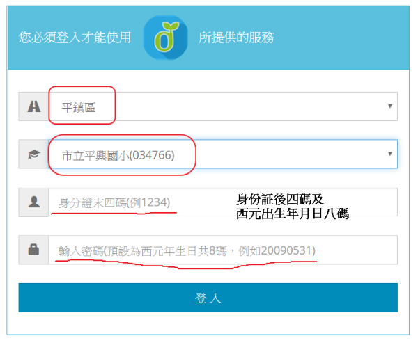 5.選「平鎮區」、「市立平興國小 034766」,最重要的輸入 身份証後四碼 及 西元出生年月日八碼
